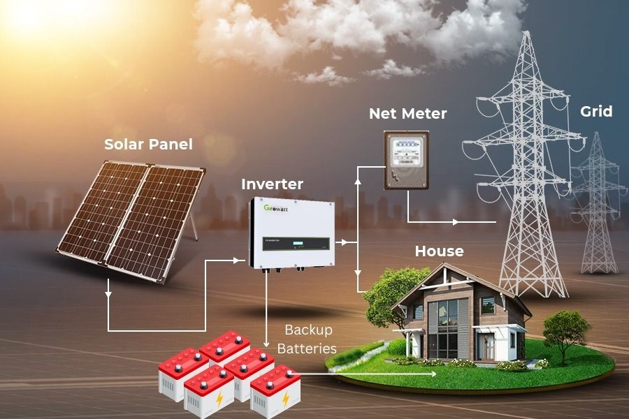 • On-grid solar system is battery-less system. It does not come with battery backup.